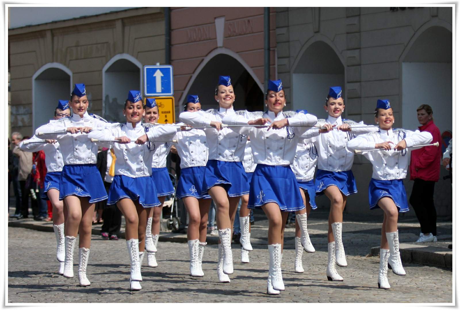 Klasický mažoretkový kostým, univerzální využití, tento kostým je preferovaný při slavnostních příležitostech. Vhodný jak při venkovních vystoupeních tak i u vystoupení konající se uvnitř. Možnost obměny kombinace barev u kapitánky.
